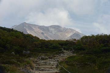 頂上の旭岳は時々雲がかかり、下界も曇り勝ちでこの分では、頂上からの景色も望めないため、