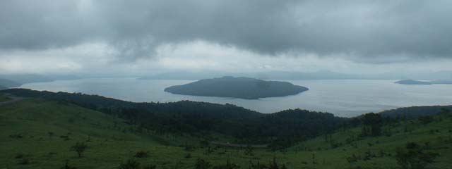 | 桂子ちゃん、今年の梅雨は明けたという気象庁の発表は間違いに違いありません。 弱い太平洋高気圧の性で、本来北へ押し上げられているハズの前線が降りてきて日本列島を覆っています。 お蔭で今日もすっきりしない天気になった。 それでも、テントを半乾きまで戻して、僕らは来年また来るつもりで別海を後にした。 これから、北上して知床をめざそうと思ったが・・・・・お天気悪そうなんで、やーめた。 今日は、少し西北に向かうことにした。そちらのほうが少し天気がマシなのと、翌日の行動を考えてのことである。 別海から約60km西北の弟子屈に向かった。 途中、360度の展望で有名は開陽台や多和平などの看板が目につくが、この天候では多くは望めないと、パスする。 初めて訪れていたら、間違いなく立ち寄っただろう。 弟子屈からは摩周湖への道が分岐しているが、ここもすでに 何度となく立ち寄っている+この天気なので今回は寄らずに、 曇りの美幌峠を駆け上がった。美幌峠は過去に寄った中で一番よくない眺めだった。 通り道なので、立ち寄ったが、そうでなければこの天気なのでわざわざ立ち寄ったりはしなかっただろう。 いくつもの観光地を横目に見てパスしてきたので、これが観光ツアーだったら、完全に”金返せ”のブーイングを食らっただろう。(笑) |