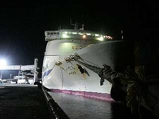 | すっかり満腹になった僕らは、苫小牧東を目指した。ほんの札幌から50kmほどの寄り道で、 高速道を使えば小樽から1時間半で行ける距離なのだ。初めて行く苫小牧東のFTだが、迷うことはなかった。 何しろ付近になにも無いのだ。来年舞鶴〜小樽間に新型船が就航すれば、ここに来ることは無いだろう。 早めに到着したため、早めに乗船出来た僕らは1等船室で旅の最後を締めくくった。 こうして僕らが北海道を去るころには、もうすでに秋の気配がそこまで来ていた。 |