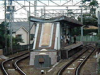 鵠沼駅ホーム。江ノ電ではホームが2本ある駅のほうが少なく、そこで上りと下りの電車が交差します。 | |