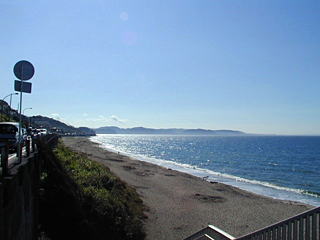 この日はとにかく天気が良くて、青い空と青い海(^^) 朝早くて砂浜に誰もいなかったのをいいことに、海に向かって「スラムダンクバンザーーイ!」と声を限りに叫んでまいりました(え) 通った車がもし窓を開けてたら聞こえてますね(汗) |