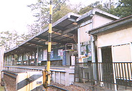 江ノ電「湘南海岸公園駅」。 江ノ電は単線(線路が1本しかなく、往復同じ線路を走っています)で、ほとんどの駅が無人駅です。各駅で車掌さんが電車から降りて1人1人切符を集めます。 |