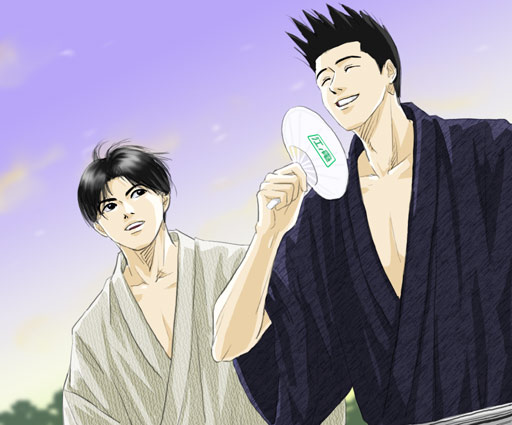 '09年仙越記念日提出品です。 蒸し暑い日が続いていたので、 なにか涼を感じられる絵がいいなーと思って ざっくり描きました。 それなりの背と肩幅がある男子が パリッと浴衣を着ているのはカッコいい!! と力説させていただきます。