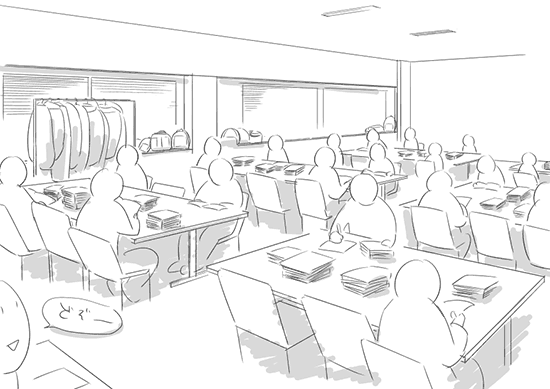 室内は会議机みたいなのがたくさん並べられていて、それぞれの机に