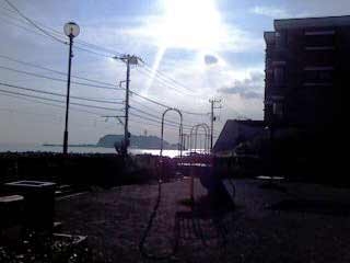 江ノ島が見えます。この快晴。おおお。お天道様ありがとー!
