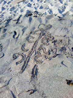 でも、コレを書いた直後、大きい波が来て砂を浚っていってしまいました(笑)