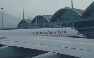 機内より。 結構珍しいケニヤ航空機発見。
