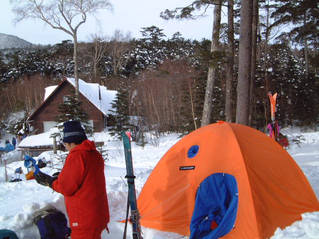山荘のストーブにあたってると外に出る気は失せて行くが、人でごった返す山荘泊まりも避けたいし、と思い。「せやけどテントがエエですワ。