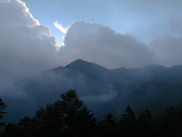 頂上から御来光を仰ぐための最後の一踏ん張りであった。30分ほど歩いた場所で水場に到着。避難小屋は水が無い為ここで給水。給水中中岳方面