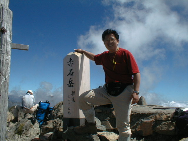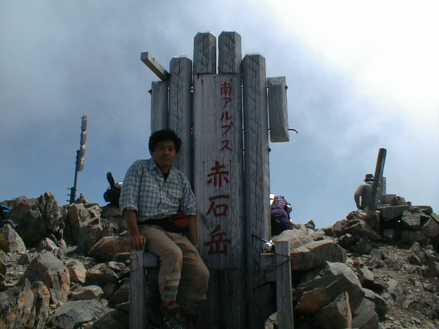赤石山頂の岳工作 | 赤石山頂の筆者 | 広広とした大聖寺平 |