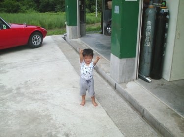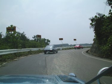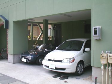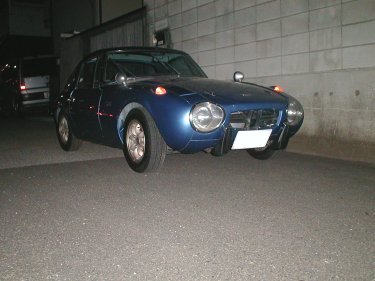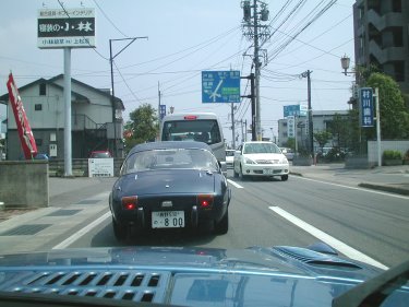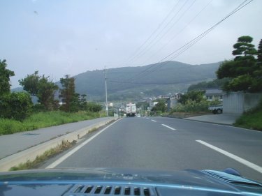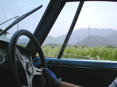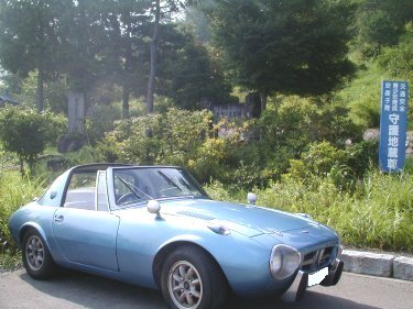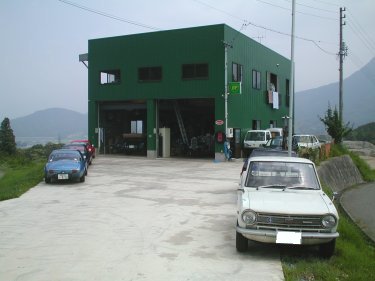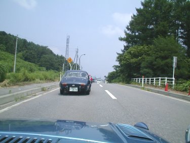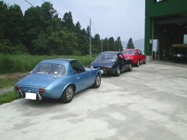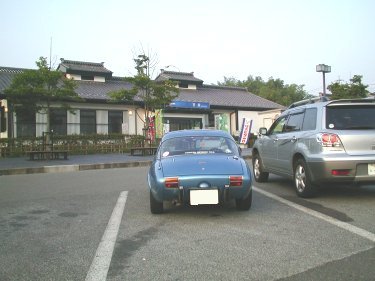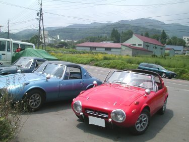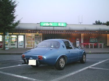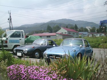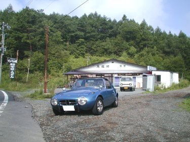 一時間程のドライブ(ツーリング?)は変化に富んで実に楽しいルートでした。 待合せ場所のコンビニから「くるま工房やまもと」に連絡。彼が到着するまでの時間を利用して火照った身体を覚ますため冷房の効いているコンビに入り、冷たい飲み物を購入する。 連絡を入れてから十数分で彼の赤いトヨスポが登場。 |