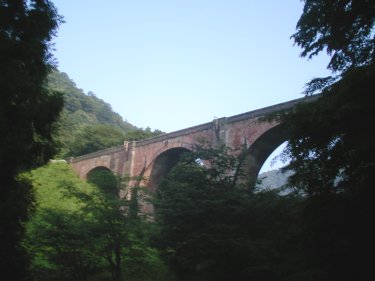 松井田妙義ICからはR18の旧道の碓井峠を目指す。 訪れたみたい「鉄道文化むら」の前を通り旧道に分かれた先でルーフを外す。 ここから長野のYさん宅までオープンエアを堪能する。(し過ぎた) 06:00ころの旧道は貸切状態ではあったが、路面が濡れているのとかなり荒れていたので、あまり飛ばさずに軽井沢を目指す。 途中、旧北陸本線の名所「眼鏡橋」を納める。ここを列車が再び走ることを願うのは私だけかな・・・ |