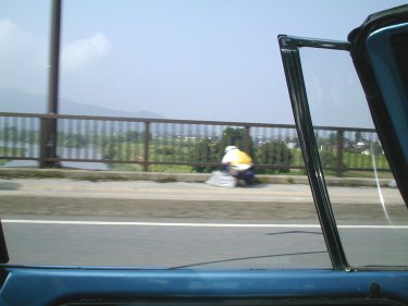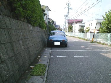 10:00少し前、這う這うの体でYさん宅近くまで到着したが、Yさんはあいにく仕事の都合で外回りから戻られていないとのこと。 日差しを避けて高台沿いの日陰にトヨスポを寄せて時間潰し、、汗で湿った着衣を幾らか乾かすことが出来た。 |