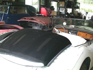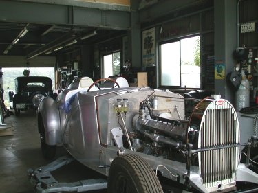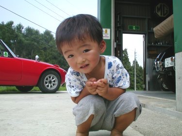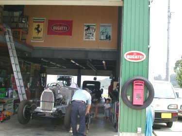 出発して十数分で「くるま工房やまもと」に到着。 高台の360°眺めの良い場所に構えるの工房に到着するとかわいいお子様のお出迎え!彼は意外と結構やんちゃ坊主である。 工房内には予想していた’50Sの英国車ではなくて、ビンテージカーのRR、ブガッティ、ベントレーの三台が鎮座ましましておりました。 いやはや、脱帽モノ、驚愕の、いや敬服の至りである。 この三台についての曰くを教えて頂いたが、ここには記載出来ないほどの長い話となるので割愛、いや省略します。 その中でも青いベントレーに興味を持ってしまいました・・・ |