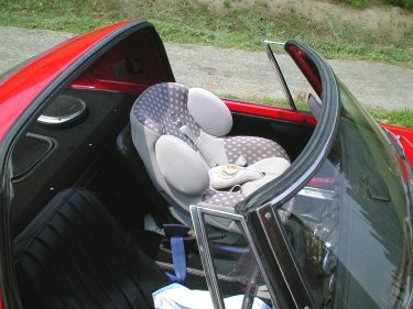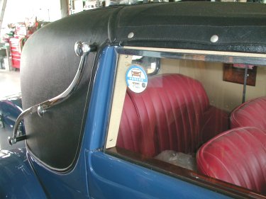 | 暫くしてYさんがご帰宅。お宅で30分涼しい屋内で過ごしてから次の目的地(本日の目的地でもある)の飯山市の「くるま工房Y」さんへと向かうことにする。 日差しがきついのでYさん宅からは、日除け代わりにもなるルーフを装着する。 真夏の炎天下でオープン走行するには、それなりの対策をしていないと熱射病になります。 |