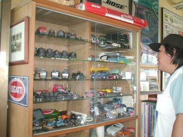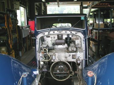興味の尽きない工房内はビンテージカーを扱うに相応しい雰囲気でございます。 お昼時と言うこともありガレージ内で少々寛ぎいだ後、昼食を摂りに近くの定食屋さんに向かう。 満腹の至福を過ごし、再び工房で寛ぎ話で盛り上がったところに、久しく聞いていなかった雷鳴が遠くに轟くのを聞く。 15:00頃より土砂降りとなり、いっときの涼風を楽しむ。 その後、二度の雷雨が訪れて雨が上がったのが夕暮れ近く。 Yさんはお仕事の都合で帰宅の道へ。 Yさんが帰られた後も二人で(トヨスポの)雑談で時は過ぎ行く・・・ 日没後、JR戸刈野沢駅近くの温泉センターへ今日一日の汗と疲れを取りに二台のトヨスポで向かう。 帰りに夕食を頂きにレストラン「ぽむ」でたらふく「食」しました。 普段早寝のA氏は日中の疲れから23:00過ぎ、麦酒の酩酊現象が急に起こり夢の中へ・・・ 信州路(二日目)へ |