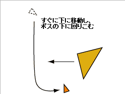 よけ終わったらすぐに画面右下へ移動。